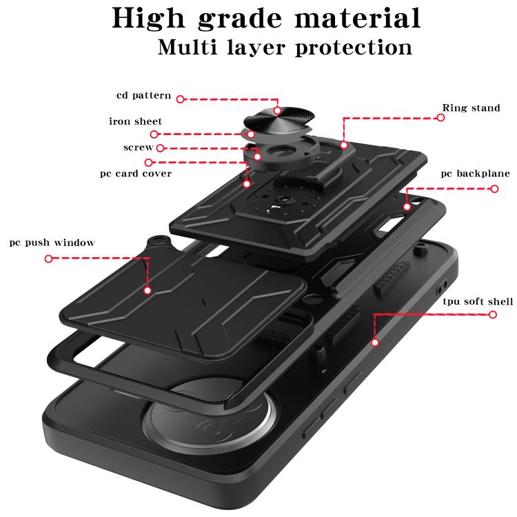 Funda deslizante de TPU y PC con ranura para tarjetas para Xiaomi Poco F7 Pro (negro)