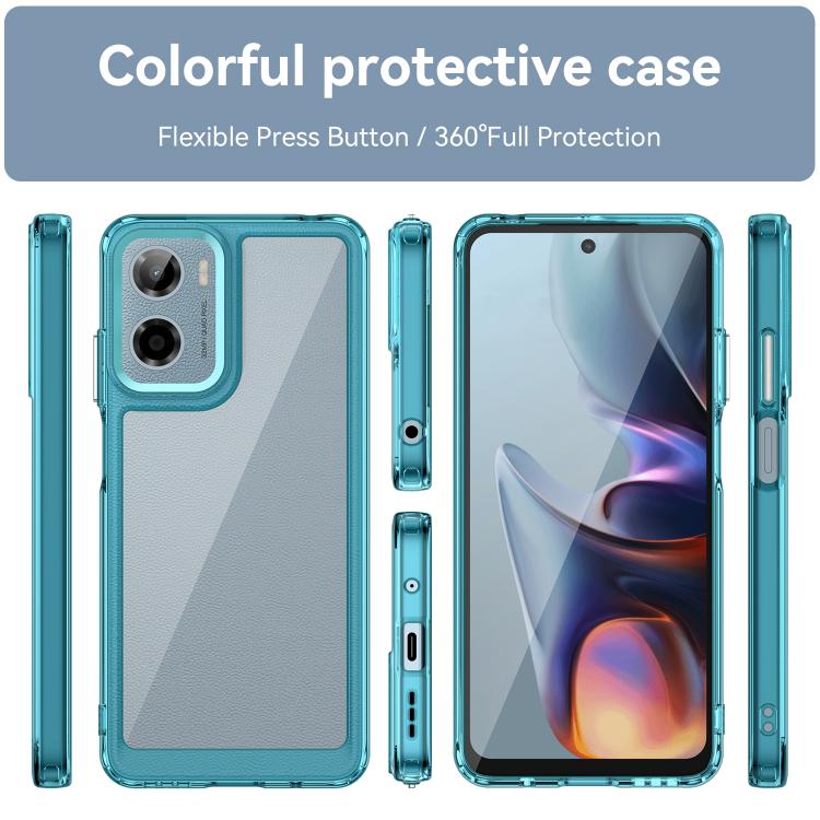 Funda Híbrida Acrílico TPU Motorola Moto E15 Serie Colorida (Azul Transparente)