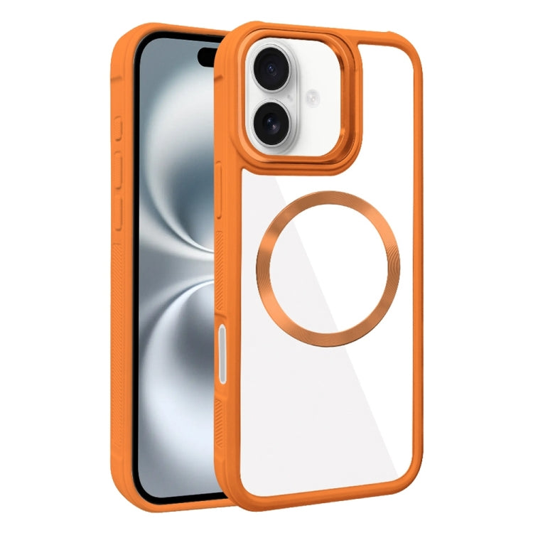 Funda híbrida Acrílico TPU con textura Cd chapada Magsafe para iPhone 16 (Naranja)