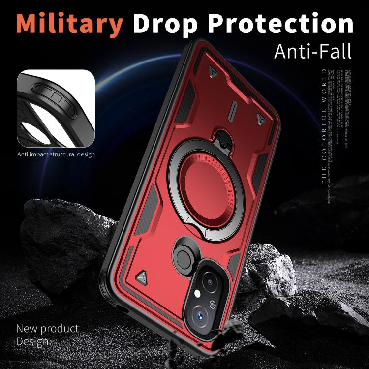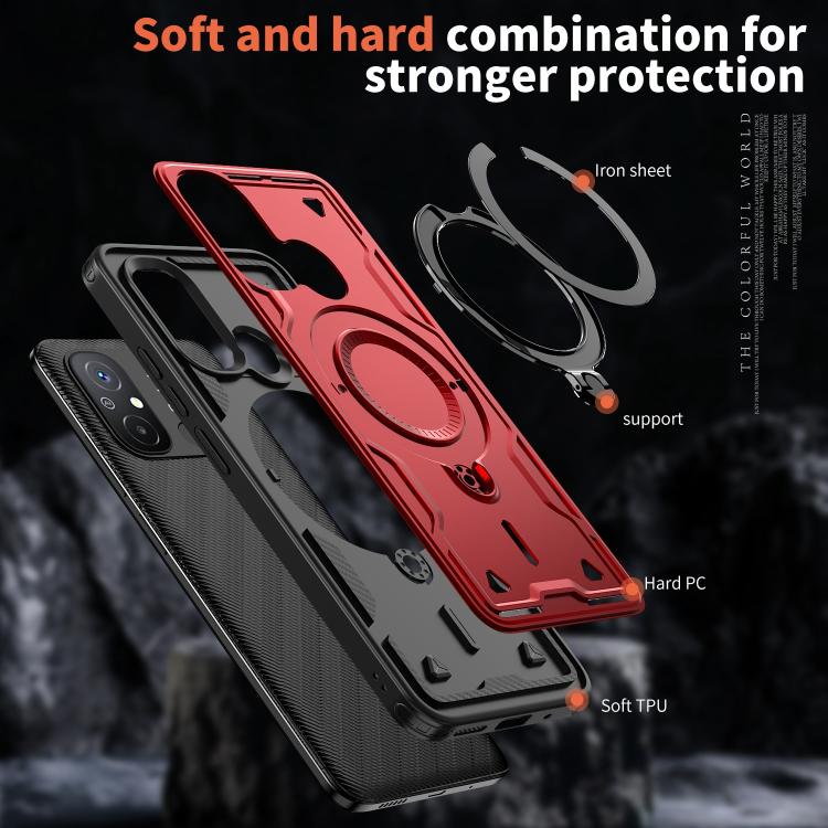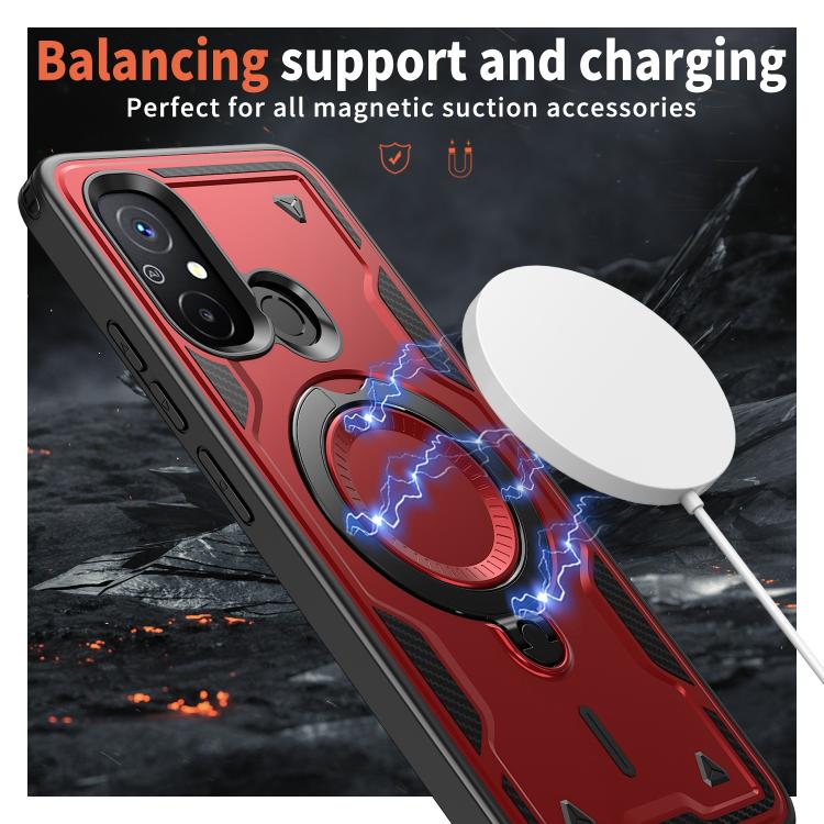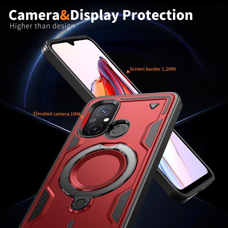 Funda híbrida de TPU con soporte de anillo MagSafe para Redmi 12C 4G (roja)
