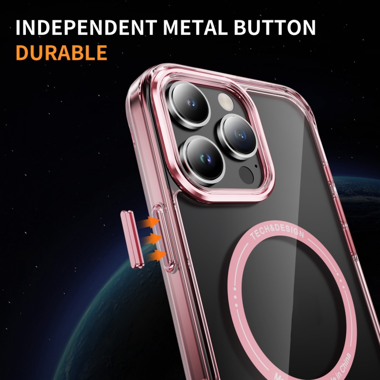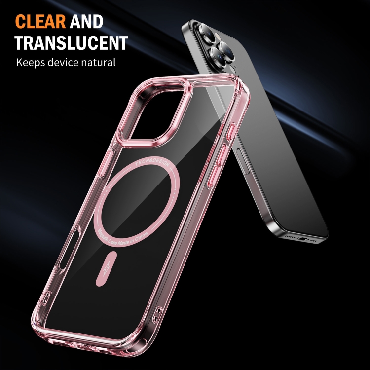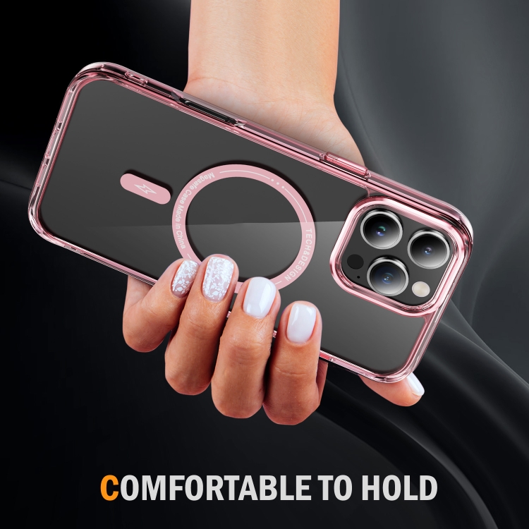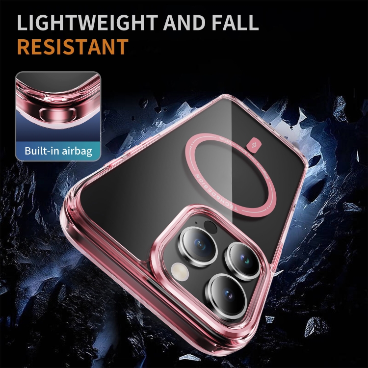 Funda híbrida TPU y PC con Airbag Magsafe para iPhone 16 Pro (Rosa Transparente)