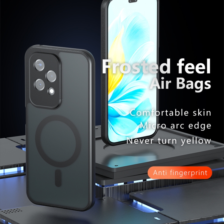 Funda híbrida TPU y PC Global Armor con orificio Magsafe para Honor 200 Lite (Negro Esmerilado)
