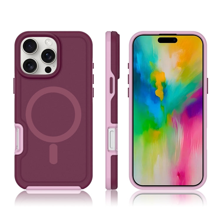 Funda híbrida TPU y PC para iPhone 16 con Protección Magsafe a prueba de golpes (Rojo Vino y Rosa Claro)