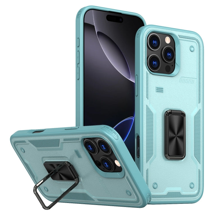 Funda híbrida TPU y PC con soporte para anillo iPhone 16 Pro Max (Azul)