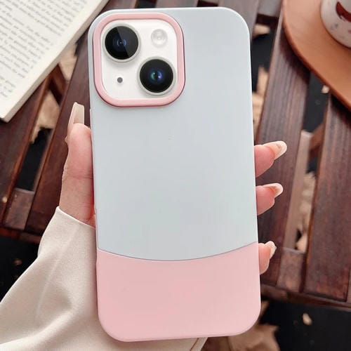 Funda híbrida TPU y PC para iPhone 13 con contraste de color 2 en 1 (Plateada y Rosa)