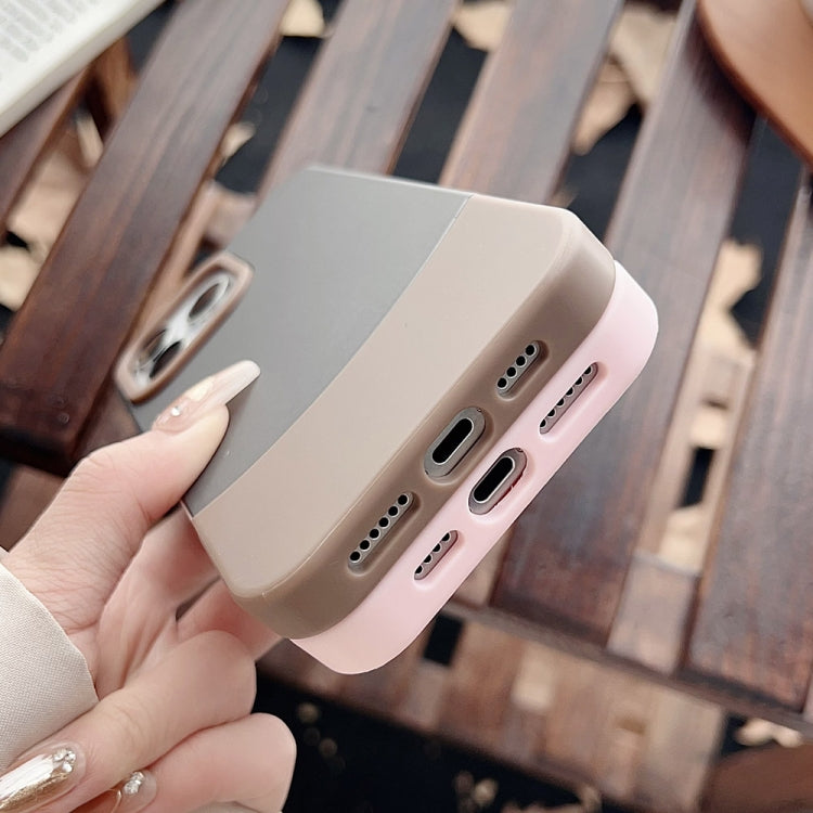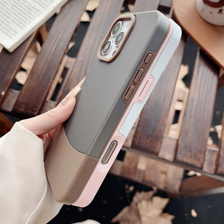 Funda híbrida TPU y PC para iPhone 14 Pro Max con contraste de color (Gris Oscuro y Marrón)