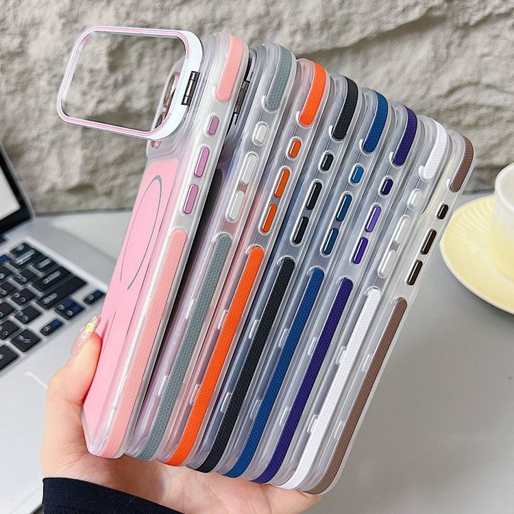 Funda híbrida de TPU y PC MagSafe para iPhone 17 Pro Max con soporte de lente galvanizado (morado)
