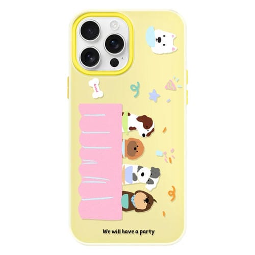 Funda híbrida TPU Policarbonato iPhone 15 Pro Max Tacto Agradable (Dog Party Yellow)