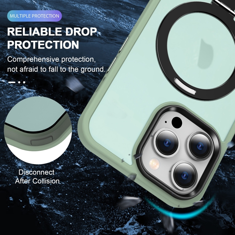 6. Soporte de anillo giratorio de 360 ​​grados: con un diseño compacto y práctico, combinamos a la perfección la poderosa tecnología MagSafe con un soporte plegable.El soporte incorporado gira sin esfuerzo 360 grados y se pliega 120 grados, lo que le brinda el ángulo de visión ideal tanto para orientaciones horizontales como verticales.Cuando está plegado, se alinea perfectamente con la parte posterior de la carcasa, manteniendo un perfil delgado para deslizarlo fácilmente en el bolsillo.