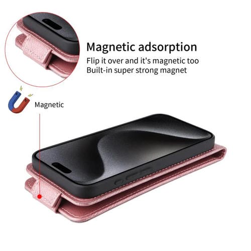 Funda magnética de cuero con tapa vertical y hebilla para iPhone 17 (oro rosa)