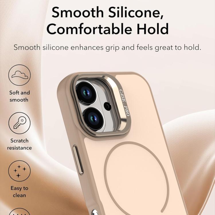 Funda Magsafe para iPhone 17 con soporte para cámara y tacto suave en color brillante y contraste (negra)