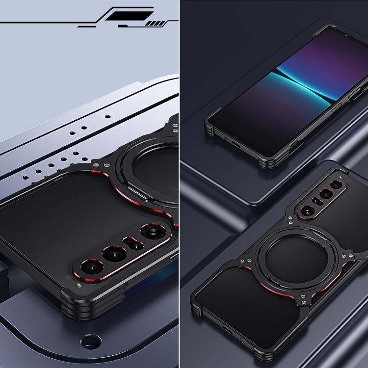 Funda metálica con soporte MagSafe sin bordes y brazo mecánico para Sony Xperia 1 VII (negro y rojo)