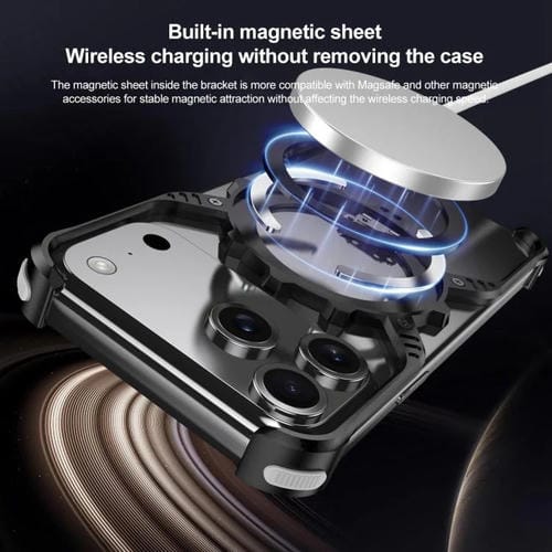 Funda metálica sin bordes con soporte MagSafe para iPhone 17 Mechanical Gear (naranja)