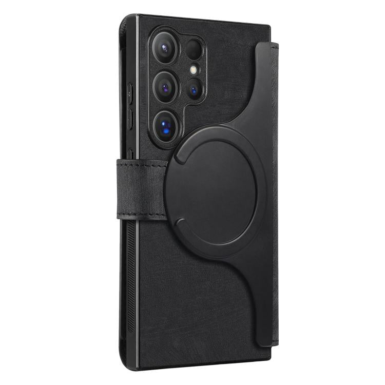 Funda Neo MagSafe RFID antirrobo con cremallera para Samsung Galaxy S24 Ultra 5G, de cuero estilo retro (negra)
