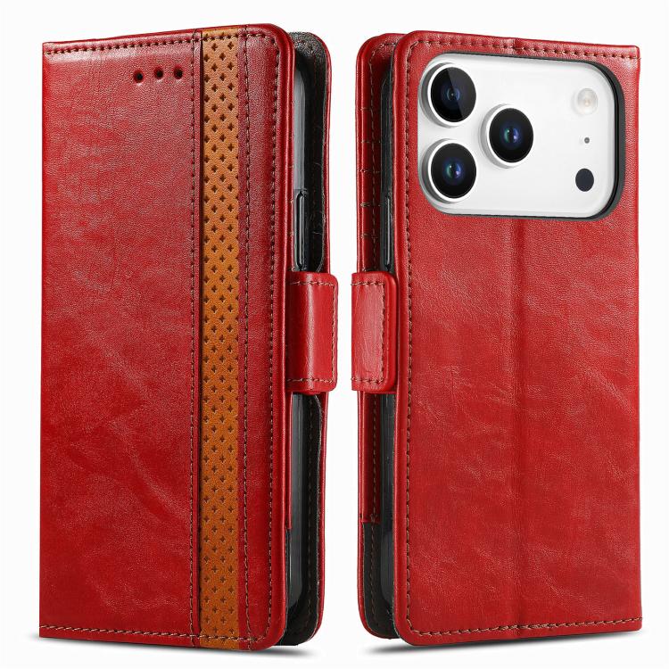 Funda Neo Splicing de cuero con doble hebilla magnética para iPhone 17 Pro Max (roja)