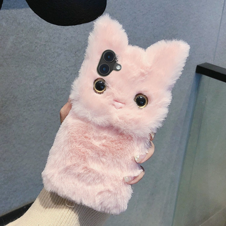 Funda para iPhone 16 Diseño Gato Peluche 3D Cobertura Total (Rosa)