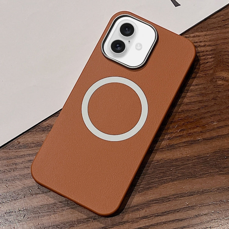 Funda para iPhone 16 con Textura de Cuero Cobertura Total Magsafe (Marrón)