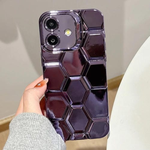Funda para iPhone 16 con Grabado Láser en Galvanoplastia y Diseño en Panal 3D (Morado)