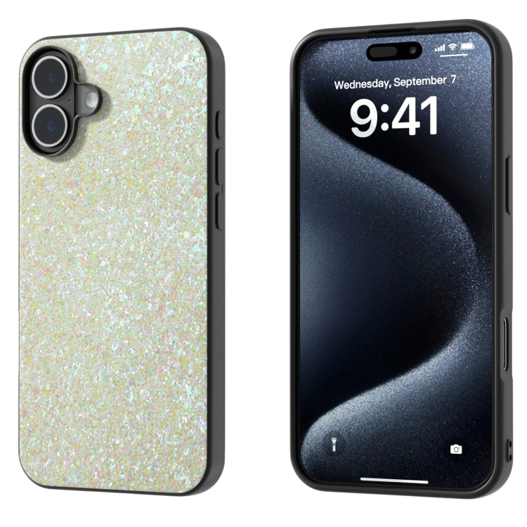 Funda para iPhone 16 con Marco Negro y Purpurina de Colores (Dorada)