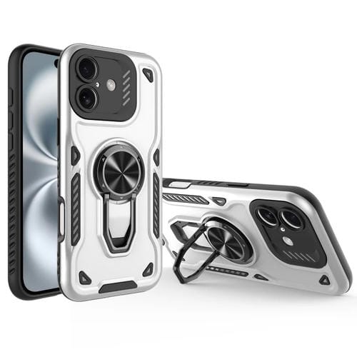 Funda para iPhone 16 Plus Soporte Giratorio Metal Carcasa Magnética TPU PC (Blanca)