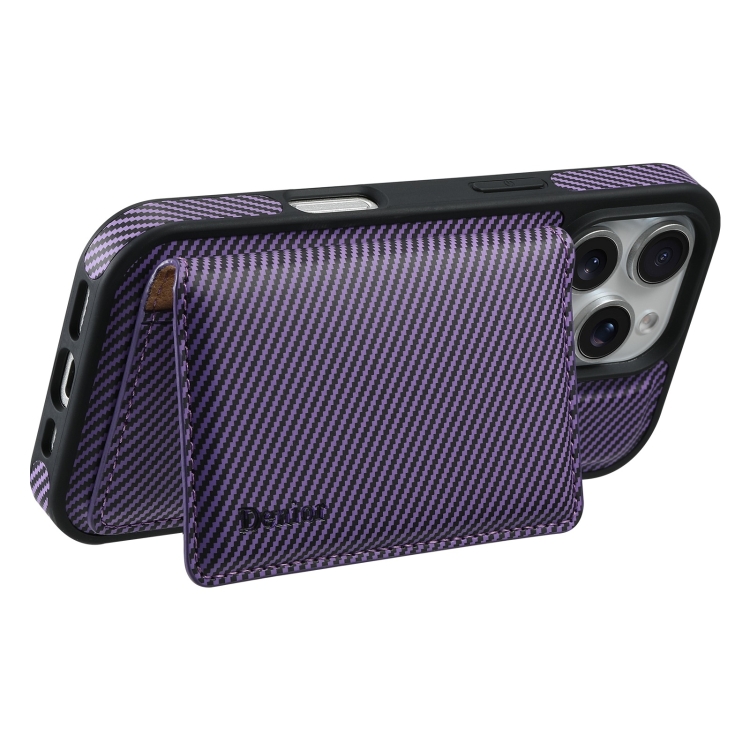 Funda para iPhone 16 Pro Max Denior Cuero Textura Fibra de Carbono Tarjetero Magsafe (Morado)
