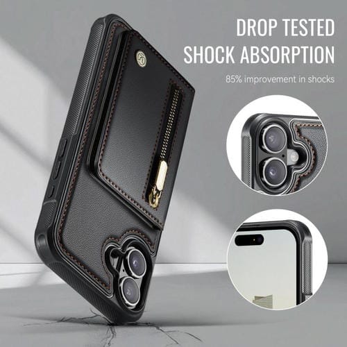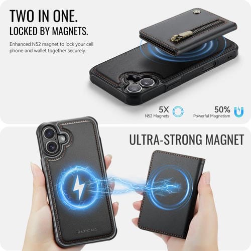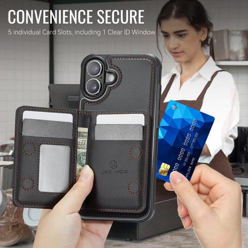 Funda para iPhone 17 JEEHOOD J12 con cremallera RFID MagSafe (negra)