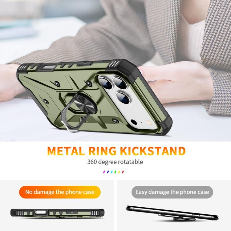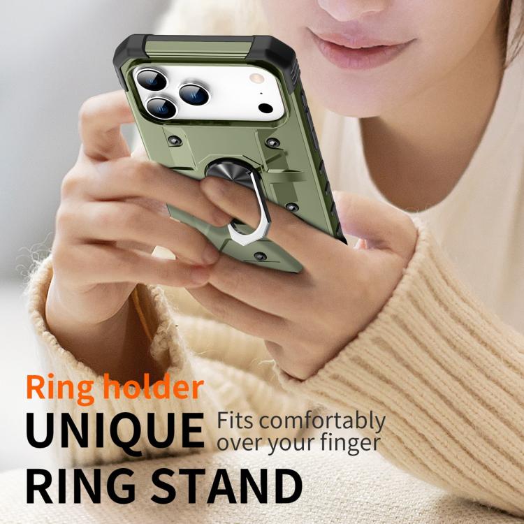Funda para iPhone 17 Pro con soporte de anillo (verde militar)