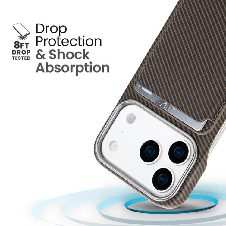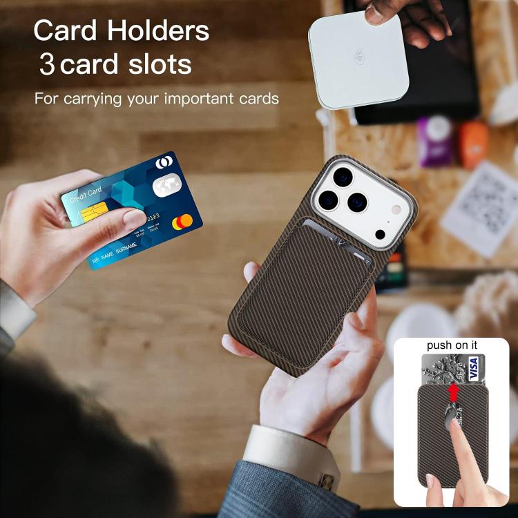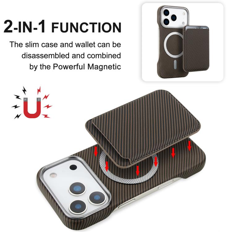 Funda para iPhone 17 Pro Max con tarjetero magnético MagSafe de fibra de carbono (marrón)