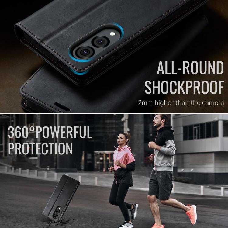 Funda para Samsung Galaxy S25 Edge CaseMe 033 con forro de piel de becerro, microfibra y bloqueo RFID (negra)