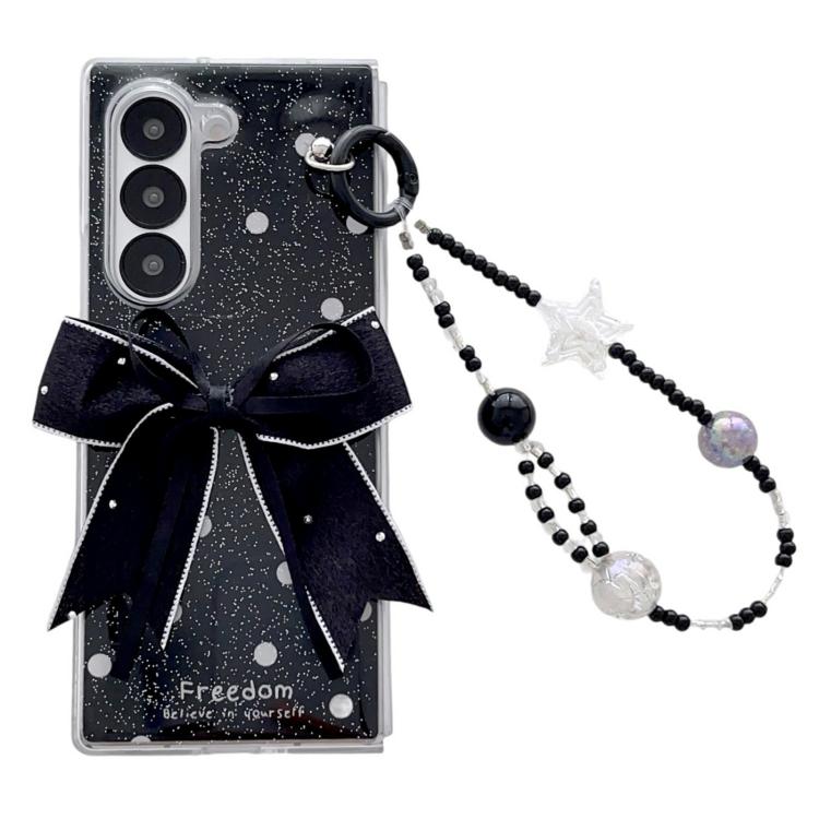 3. Correa tipo pulsera: Incluye una elegante correa de cuentas blancas y negras con detalles de estrellas y bolas de cristal, moderna y funcional para un mejor agarre.