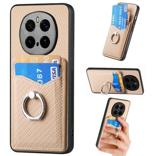 Funda para Teléfono Honor Magic7 Pro con Anillo y Billetera Fibra de Carbono (Caqui)