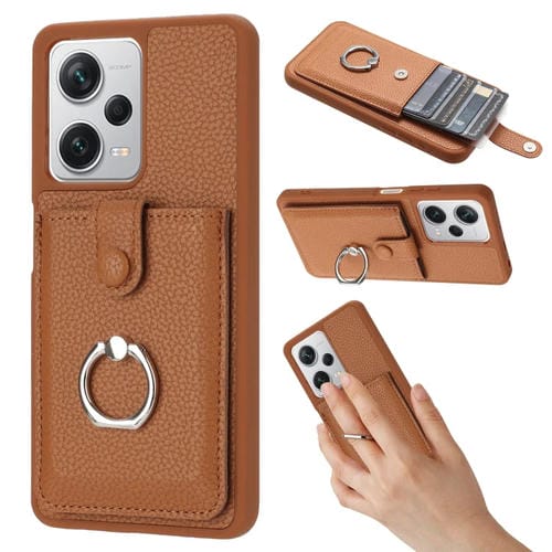 Funda para Teléfono con Anillo y Diseño de Textura de Lichi para Redmi Note 12 Pro 5G (Marrón)