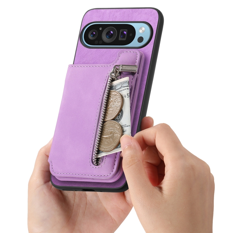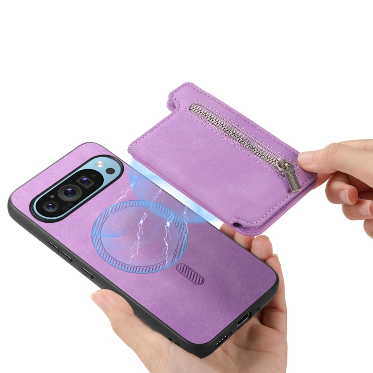 Funda para Teléfono Google Pixel 7 con Cremallera Magsafe, Tarjetero y Cartera (Morado)