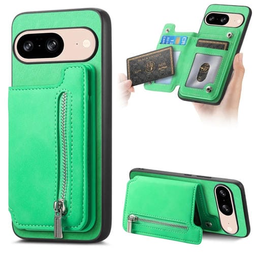 Funda para Teléfono Google Pixel 8 con Cremallera Magsafe Retro y Porta Tarjeta (Verde)