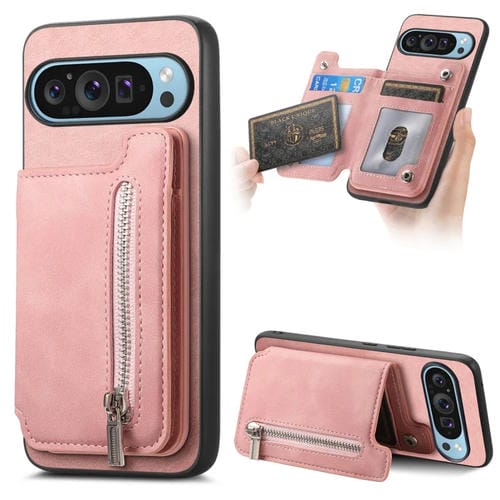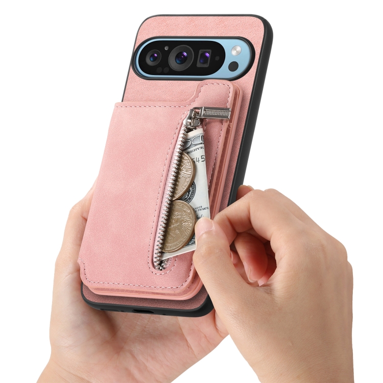 Funda para Teléfono con Cremallera Magsafe Retro para Google Pixel 8 Pro (Rosa)