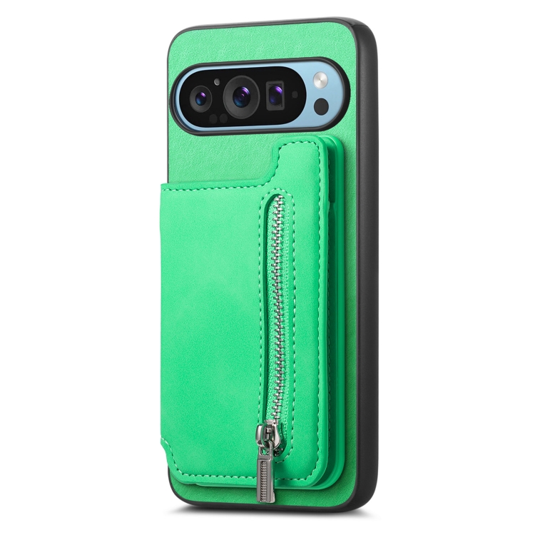 Funda para Teléfono Google Pixel 9 Pro XL con Cremallera Magsafe Tipo Billetera para Tarjetas (Verde)