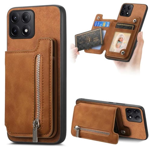 Funda para Teléfono con Cremallera Magsafe Retro para Redmi K70E/Poco X6 Pro 5G (Marrón)
