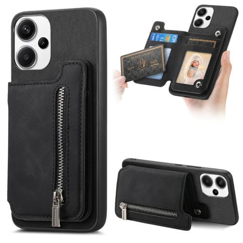 Funda para Teléfono con Cremallera Magsafe Retro para Redmi Note 13 Pro+ (Negra)