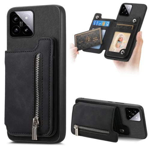 Funda Para Teléfono Con Cremallera Magsafe Retro Para Xiaomi 14, Funda Para Tarjeta, Color Negro