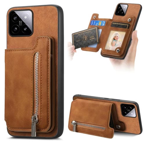 Funda Para Teléfono Con Cremallera Magsafe Retro Para Xiaomi 14, Funda Para Tarjetas, Funda Trasera Para Teléfono (Marrón)