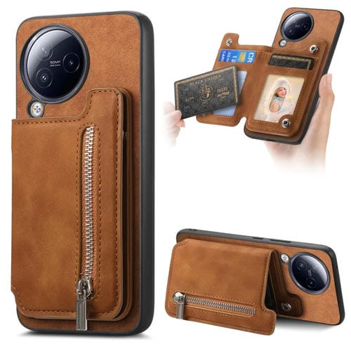 Funda para Teléfono con Cremallera Magsafe Retro para Xiaomi Civi 3 5G (Marrón)