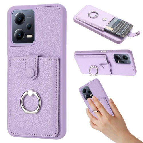 Funda para Teléfono con Diseño de Textura de Lichi y TaRJetero con Anillo para Redmi Note 12 5G (Morado)