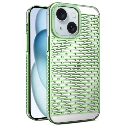 Étui de téléphone à dissipation thermique en PC galvanisé mat creux pour iPhone 15 Plus (vert)