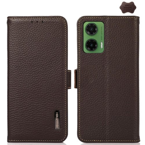 Funda para Teléfono Khazneh Cuero Genuino con Imán Lateral y RFID para Motorola Moto G35 (Marrón)