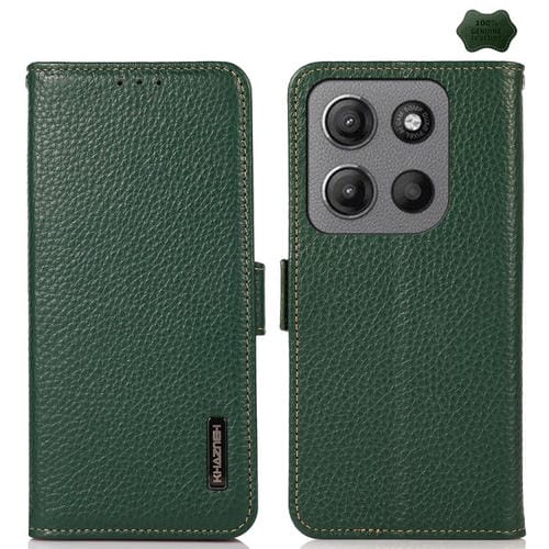 Funda para Teléfono Motorola Moto G15 4G/G05 Khazneh Cuero Genuino Lichi con Imán Lateral Rfid (Verde)