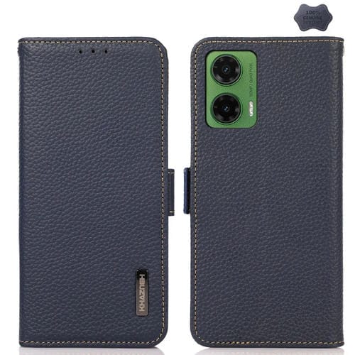 Funda para Teléfono Motorola Moto G35 Khazneh con Imán Lateral Rfid Cuero Genuino (Azul)