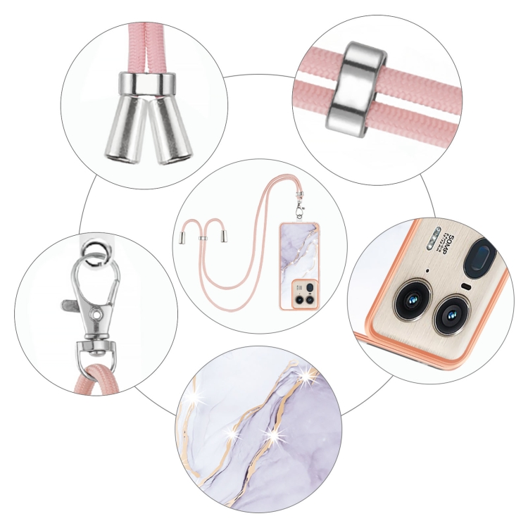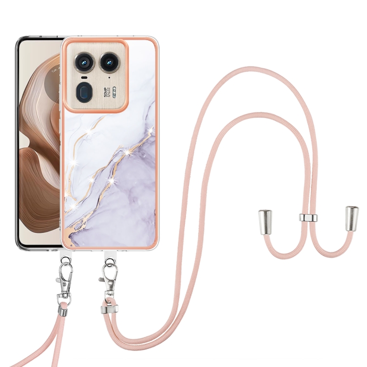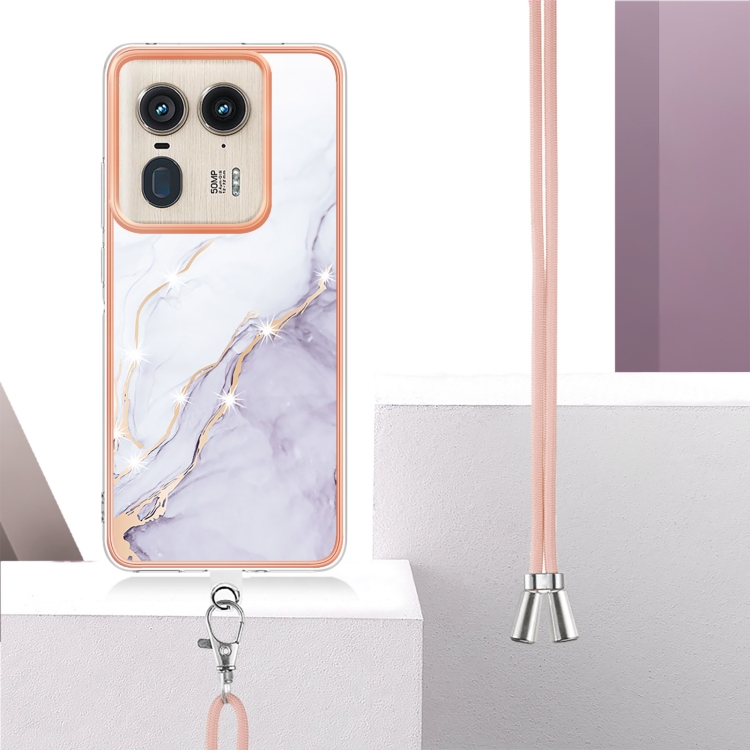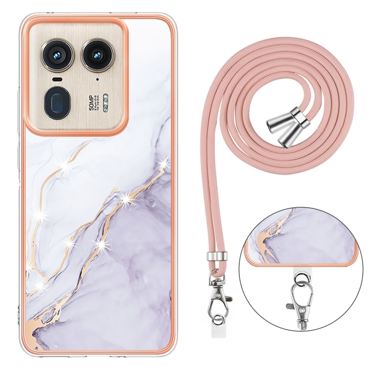 Funda para Motorola Edge 50 Ultra con Imd Doble Cara y Galvanoplastia Mármol con Cordón (Blanco)