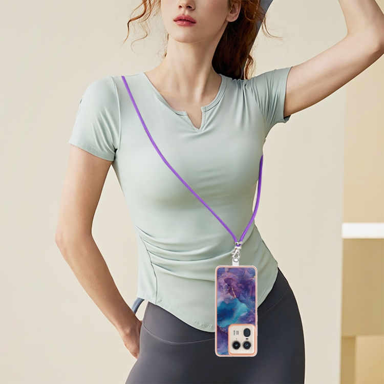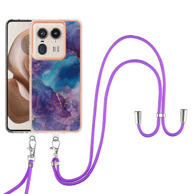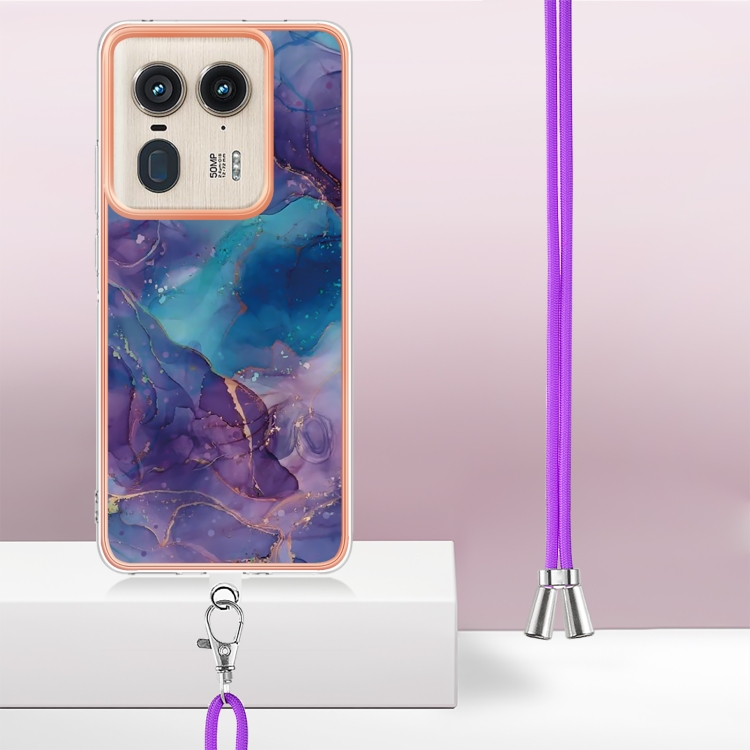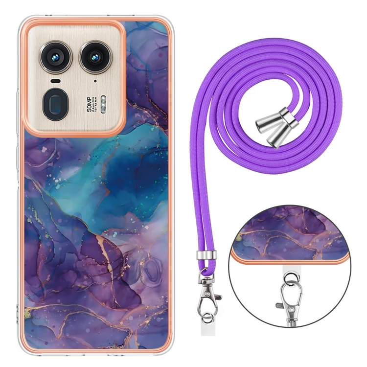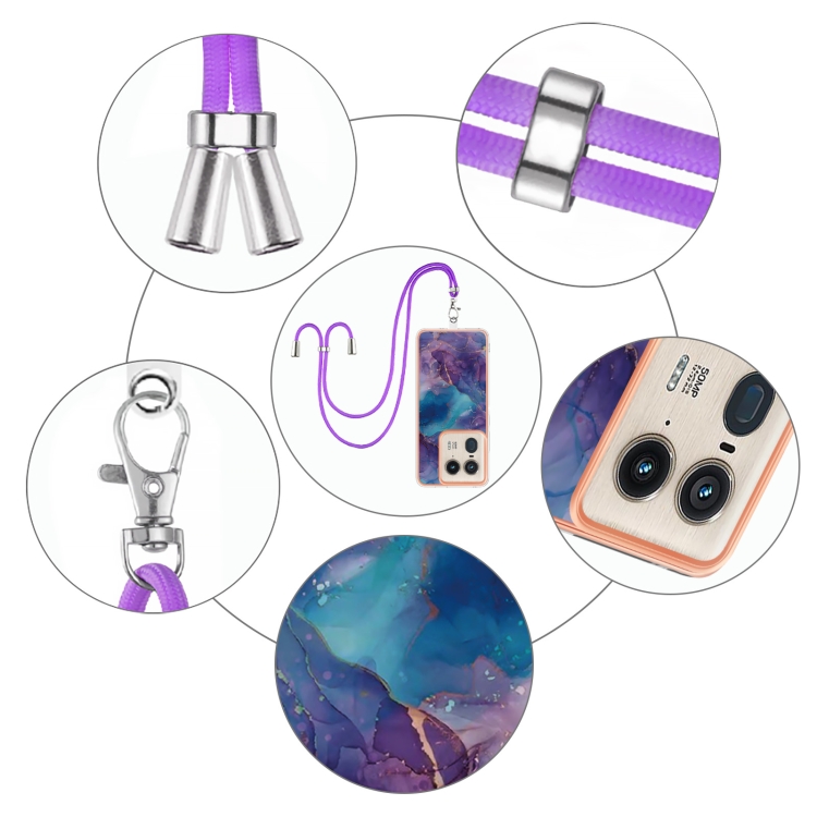 Funda para Motorola Edge 50 Ultra con Imd Doble Cara y Galvanoplastia Mármol con Cordón (Púrpura)