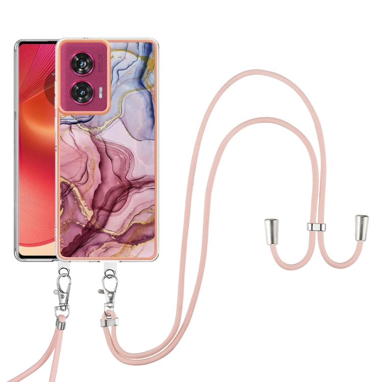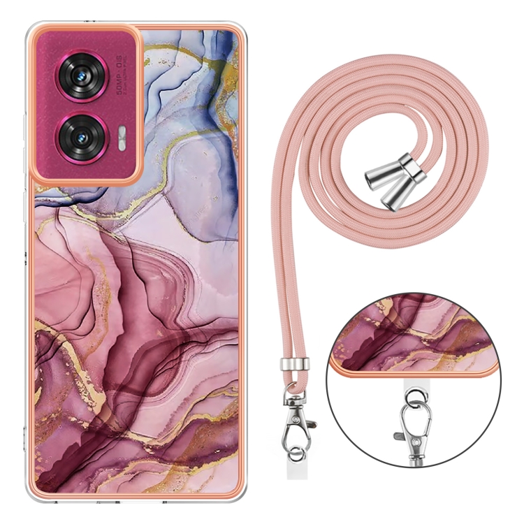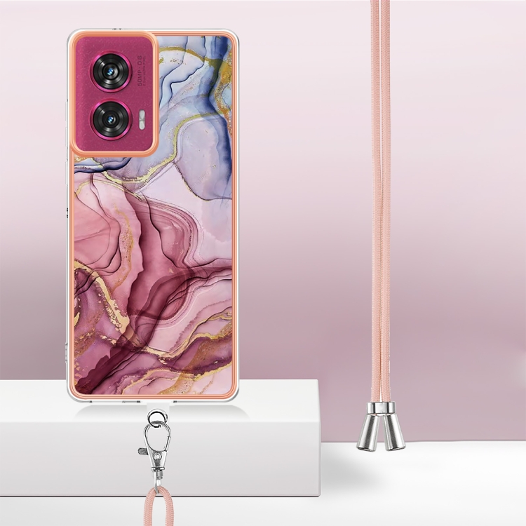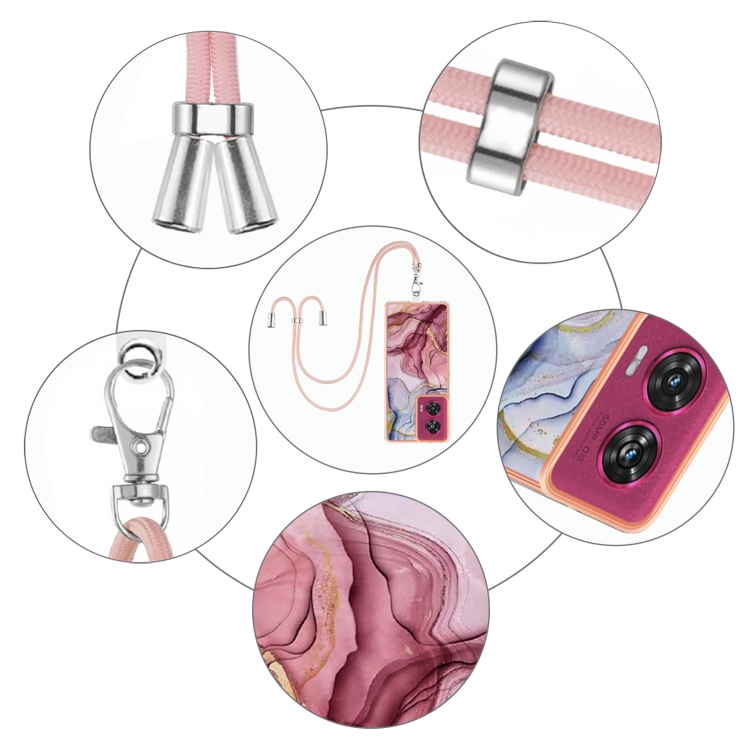 Funda para Teléfono Motorola Edge 50 Fusion con IMD Doble Cara y Galvanoplastia Mármol (Rojo Rosa)