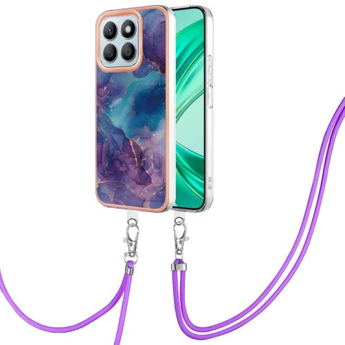 Funda para Teléfono Honor X8B con Imd Doble Cara Revestimiento Mármol Galvanizado y Cordón (Púrpura)